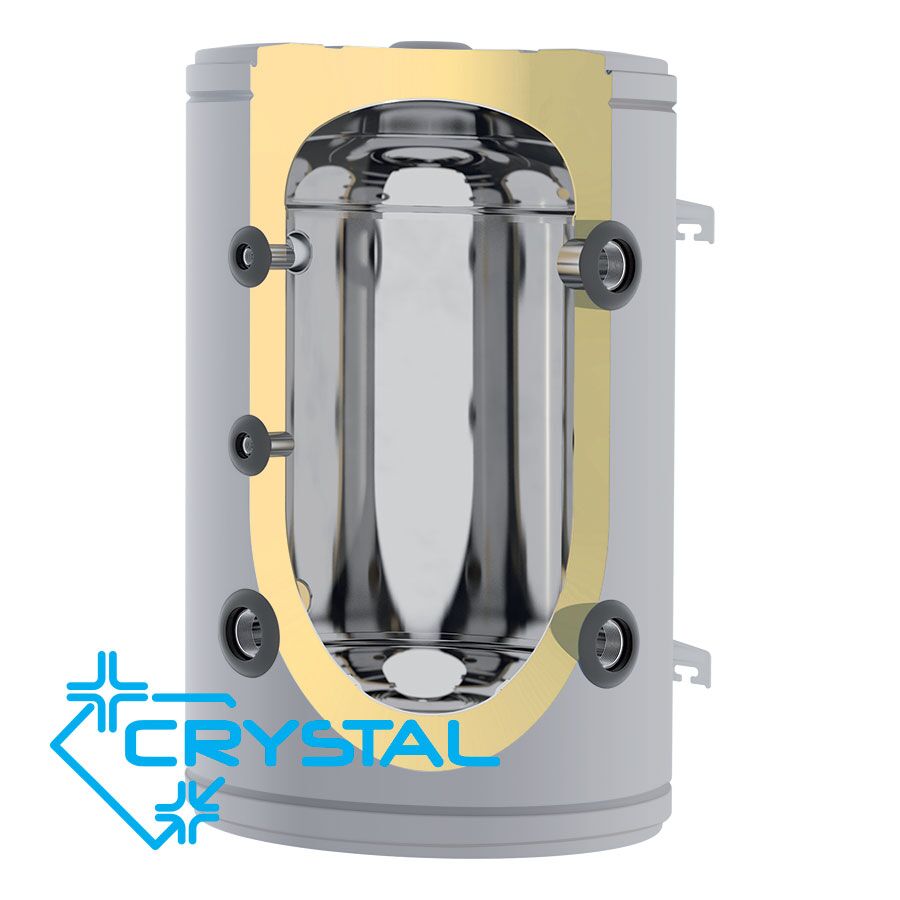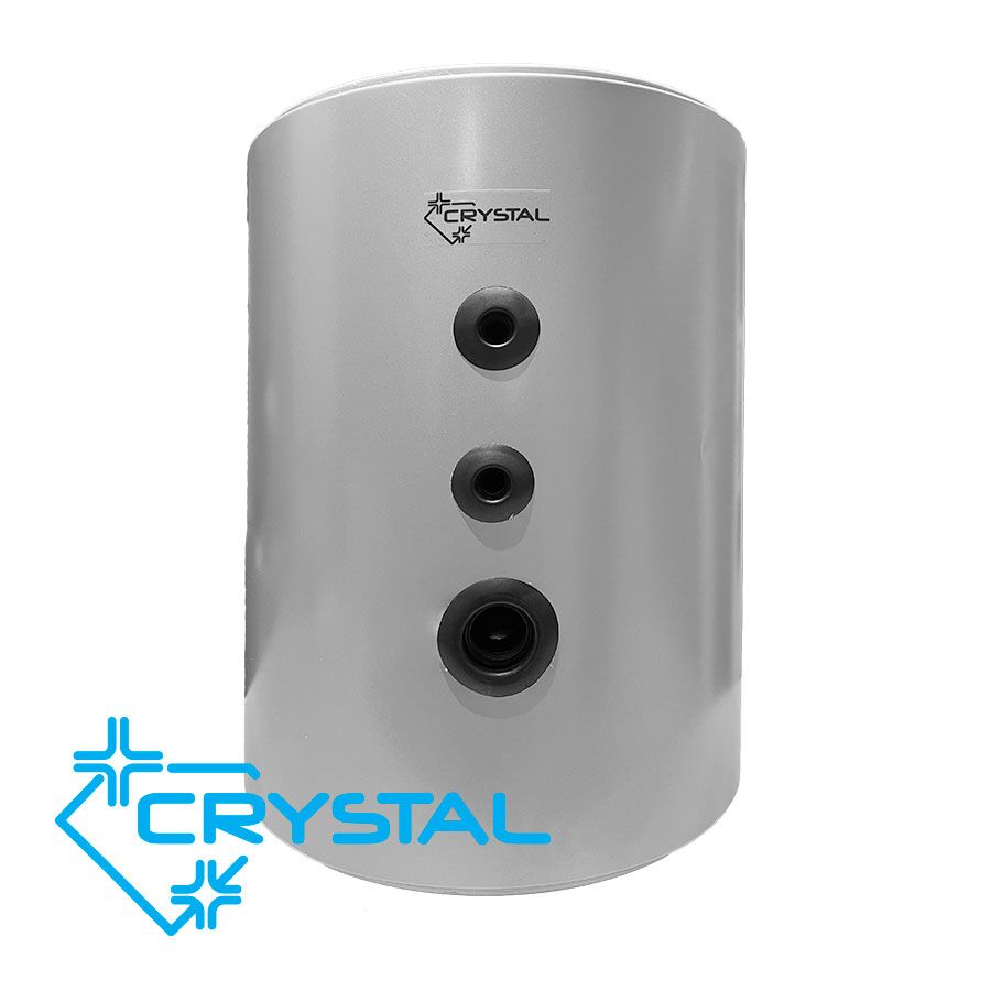 Емайлираните буферни съдове Crystal са предназначени за използване в отоплителни/охладителни термопомпени системи. Масово, производителите на термопомпи имат изискване за минимален воден обем на инсталацията и дебит през термопомпата, което налага използването на буферен съд.